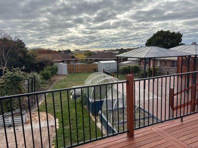 Good sized enclosed yard with garden sheds and large split-level
