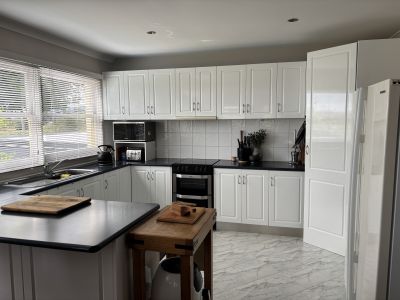 Generous kitchen with a double oven for those budding chefs, ample storage and cupboard space, large fridge /freezer.