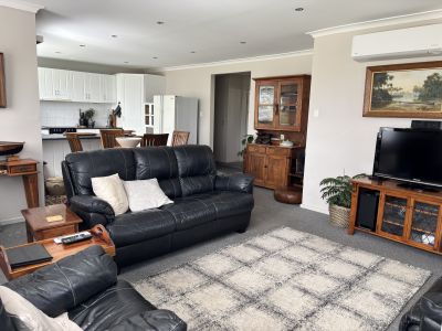 Open plan lounge room warmed and cooled with a reverse cycle unit to help maintain the perfect temperature all year round.