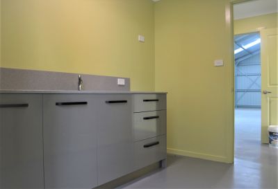 This recently constructed property (2020) allows for access throughout, with warehousing at either end, and internal access to the office, laundry, bathroom and kitchen facilities to the centre.