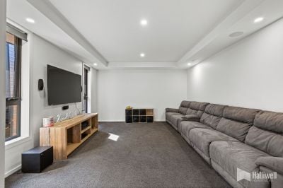The formal lounge or rumpus room is equipped with surround sound and features sliding doors that provide privacy from the kitchen and family room, making it perfect for movie nights or quiet evenings.